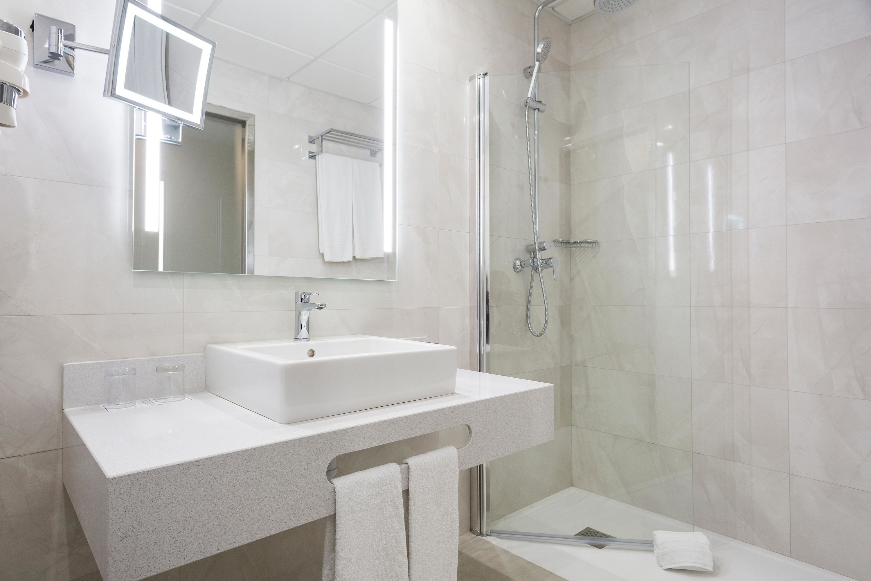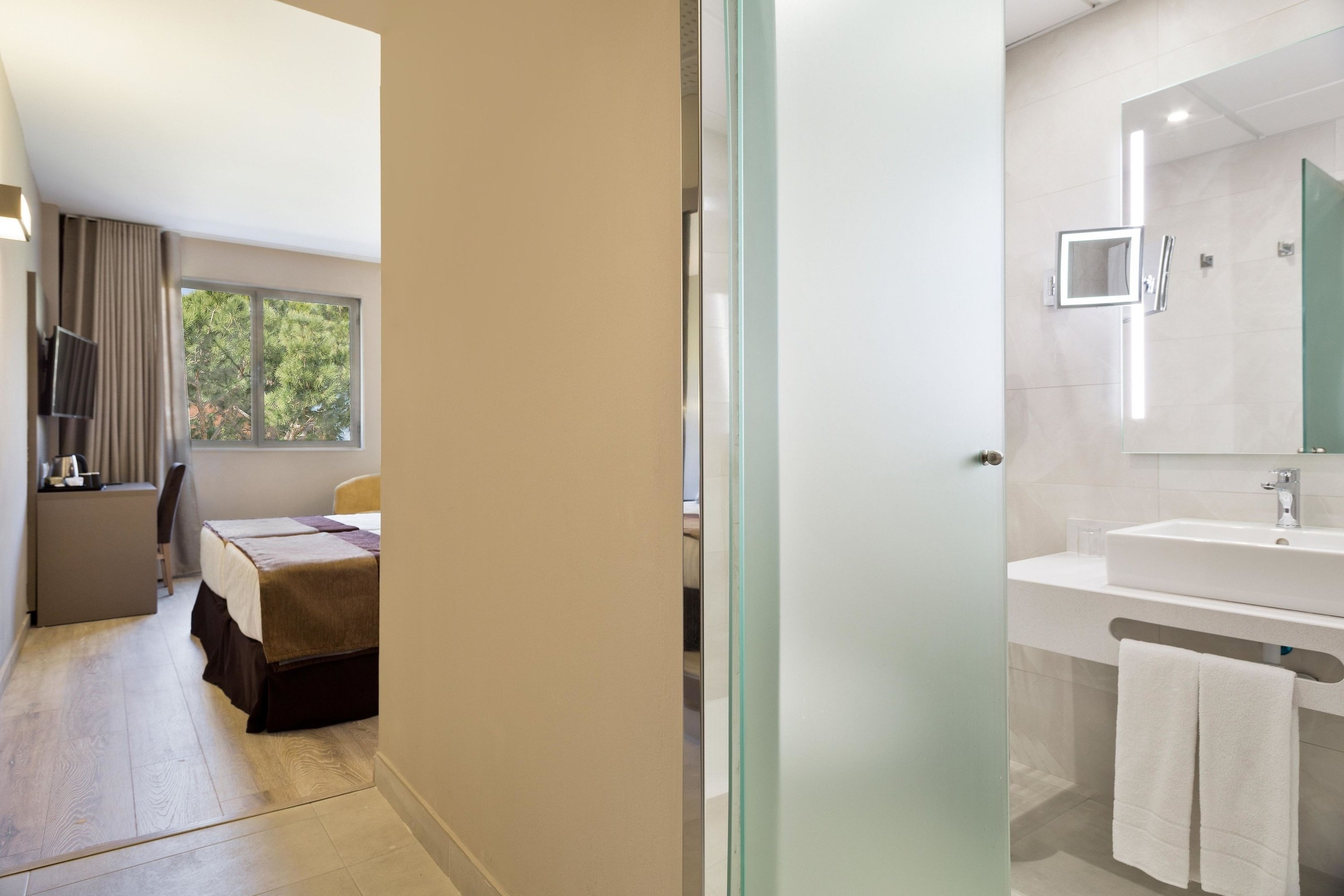 Habitaciones modernas, funcionales y confortables. Pueden ser con 1 cama de 150x190 o 2 camas de 90x190 y con amplios espacios de giro para que las sillas de ruedas puedan maniobrar. Los baños cuentan con elementos accesibles y barras de apoyo regulables, así como platos de ducha enrasados y sillas de ducha fijas. La habitación mide 28.3 metros cuadrados.